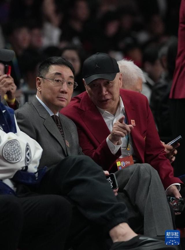 3月7日,中国篮球名人堂成员匡鲁彬(右)、王非在场边观赛。新华社记者 孟永民 摄